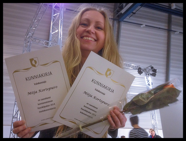 Sain kunniamaininnan Vuoden muotokuvaaja 2014- kilpailussa. Samalla sain yllätyksekseni tietää, että olin saanut myös kunniamaininnan muotokuvasarjassa kuvalla Unelmoija ulapalla!!!!!